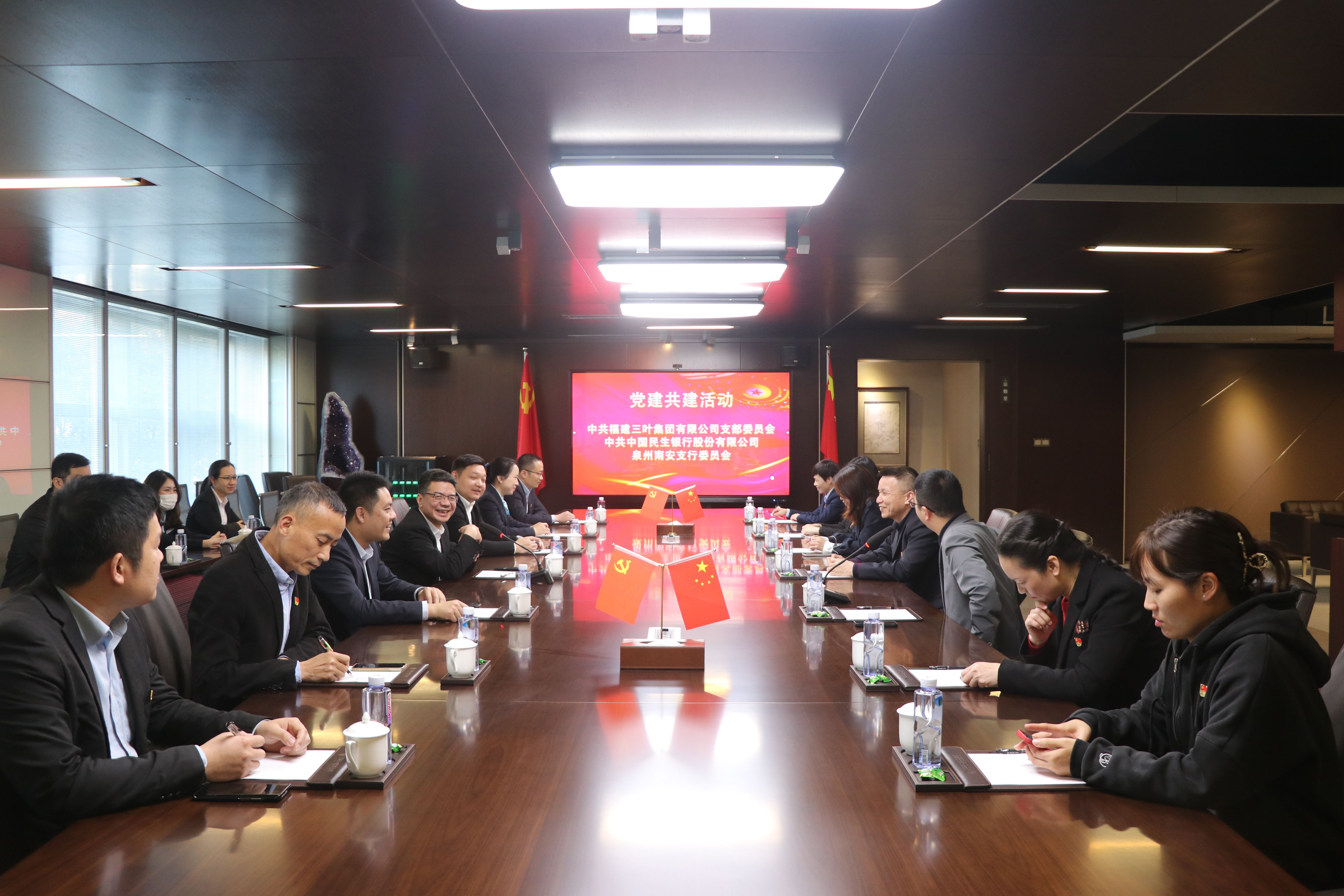 中共福建三葉集團支部聯手中共中國民生銀行南安支行支部開展黨建共建活動作者: 來源: 時間:2023-3-10 21:00:06 2023年3月10日下午,中國民生銀行泉州南安支行黨支部書記、行長許琪博帶領支部黨員到我集團支部開展黨建工作交流活動,三葉集團黨支部書記李炳聰及支部黨員共同出席參加。