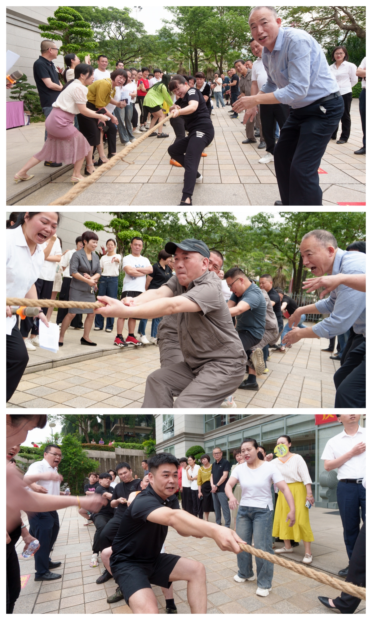 本次拔河比賽共有七支隊伍參賽,每個代表單位選送男、女各一支隊伍,每支隊伍參賽選手8名。比賽抽簽決定PK隊伍,每局結束后交換場地,三局兩勝制。 各單位代表隊都顯示出最強的比賽陣容,齊心協力,勇爭第一!隨著裁判一聲哨響,拔河比賽拉開了激烈的對決! 力拔山河、勇奪冠軍。 “1、2加油!1、2加油!......”吶喊聲、助威聲響徹全場,啦啦隊們高漲的熱情瞬間點燃全場,為比賽增添了一抹亮色,每一聲吶喊都帶來一股力量,尤其在勝負難分的時刻,大家毫不退卻,咬緊牙關,堅持到底!一場場實力相當的勁敵較量,一鼓作氣的瞬間秒殺,牽動著在場所有人的心。鼓掌聲、歡笑聲此起彼伏,精彩紛呈。 三局兩勝,兩兩對決,經過一番激烈的角逐,拔河比賽的排名終于誕生!冠軍最終由南安大酒店男隊和華僑大酒店女隊獲得,華僑大酒店男隊、綜合單位女隊獲亞軍,海西物流事業部男隊、南安大酒店女隊獲季軍,綜合單位男隊獲得第四名。