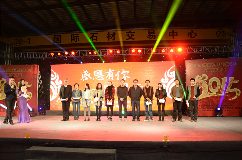 高時物流國際石材交易中心的進步離不開每一位合作伙伴的大力支持!感恩有你,一路同行!在領導致辭后,晚會舉行了“2014年度最佳合作伙伴”頒獎環節。公司副總經理林曉毅先生揭曉了獲獎的12家企業并向他們頒發了獎牌。所有獲獎企業更將獲得公司獎勵的一年廣告牌使用權。現場的合作伙伴們反響熱烈,紛紛表示在過去一年里,感受到了服務品質以及專業水平,2015有信心與高時物流一道創造更大的市場。