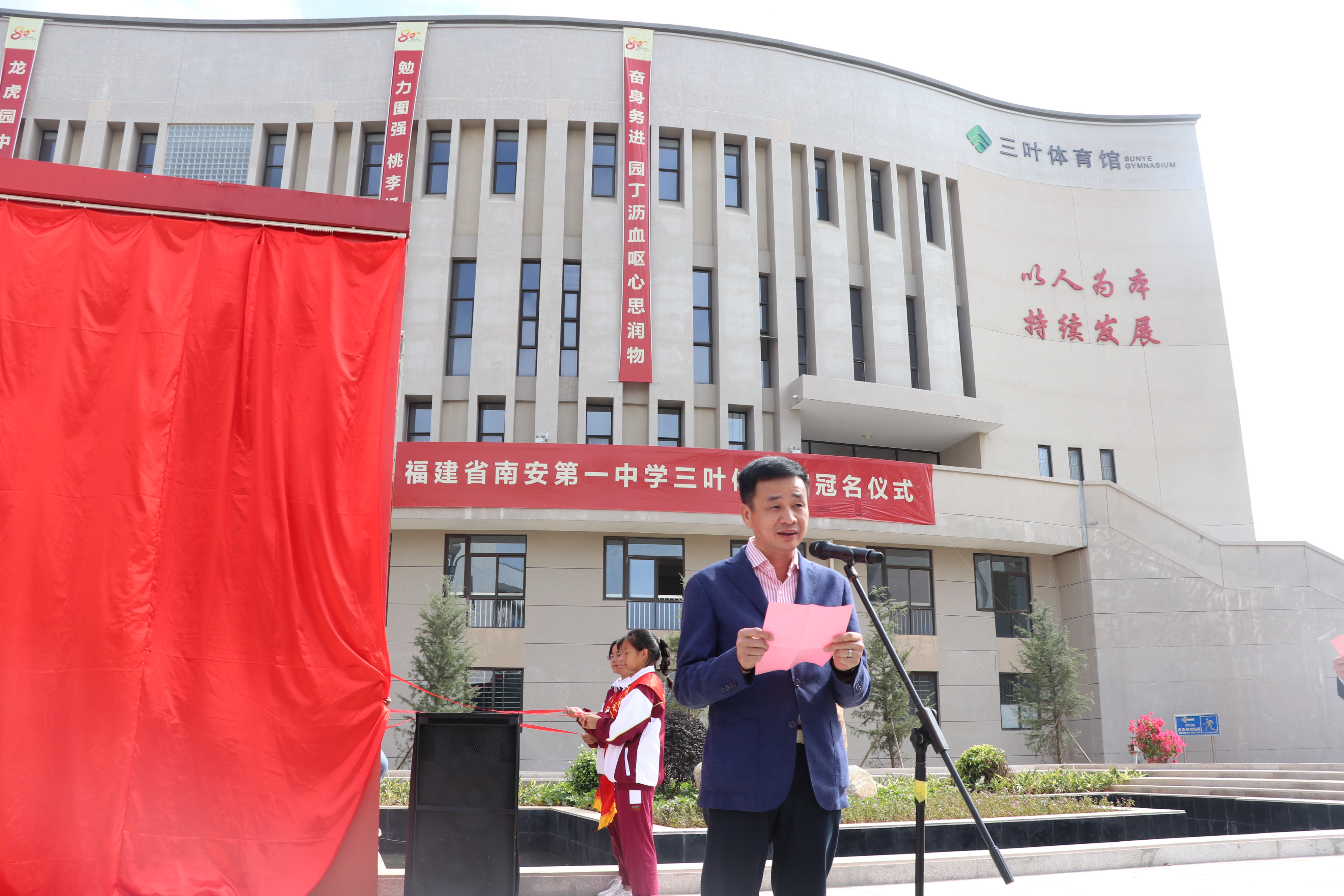 16號上午,三葉體育館冠名儀式在南安第一中學江北校區舉行。南安市人大副主任、工商聯主席、集團董事局主席葉維新,中共南安市委常委、宣傳部部長吳忠溪,南安市人民政府副市長王昭昭,南安市教育局局長黃清地等出席了冠名儀式。