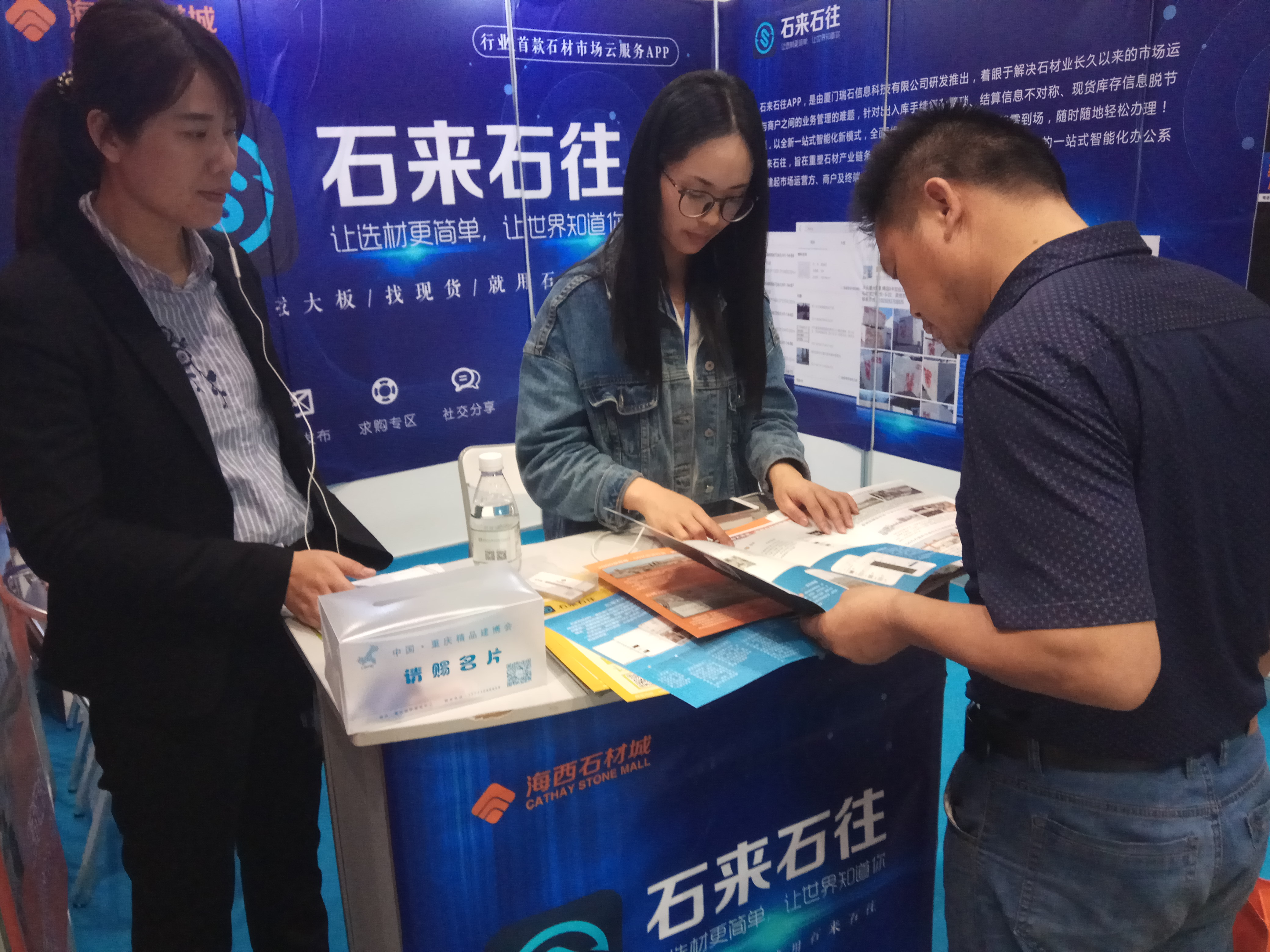 石來(lái)石往作為行業(yè)首款石材市場(chǎng)云服務(wù)APP首次亮相于本屆重慶建博會(huì)!當(dāng)天現(xiàn)場(chǎng)就吸引了現(xiàn)場(chǎng)眾多采購(gòu)商眼球,并紛紛駐足參觀咨詢!